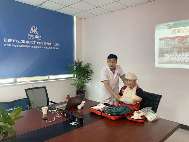 6月17日上午,汤口路项目部开展模拟施工现场发生交通事故应急演练,并邀请中国医科大学第一附属医院南区急诊科专家讲解施工现场急救知识。