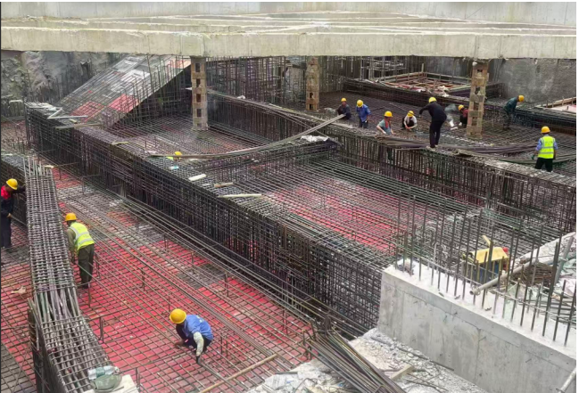 该项目地处合肥市瑶海区核心区域,周边交通密集、杆管线错综复杂,据悉该项目主体结构于2024年9月30日封顶,期间2号风亭因中高考杆线迁改延期30余天,4号出入口暗挖段因上方高压电缆标高设计变更工期延期60余天,项目工期滞后严重。为抢工期、保进度,合肥路桥轨道建设团队迎难而上、奋起直追,采取一系列攻坚举措:强化资源配置,增配施工班组、机械设备及材料储备;实施进度激励机制,全面提升作业效能;制定“日调度、周通报”制度,细化工序管控,全面推进施工进度。
